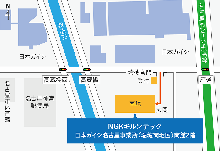 - JR・名鉄・地下鉄「金山総合駅(北口)」からタクシーで約5分もしくは市バスで約5分(金山15系統:熱田プール下車)