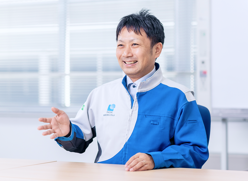 私は入社して7年目になりますが、職場環境は本当に良いと思います。先輩方はとても優しく、困ったときや分からないことが出てきたときは、相談すれば分かるまで丁寧に教えてくれます。職場はワンフロアで部署間の会話も多く、設計以外の知識も手に入れやすい環境であるのも魅力。大学でものづくりの基礎を学んだとはいえ、未経験入社だった私にとっては、NGKキルンテックの職場環境が成長の支えになりました。これから大学を卒業して新卒入社される方には、非常に安心できる環境ではないでしょうか。