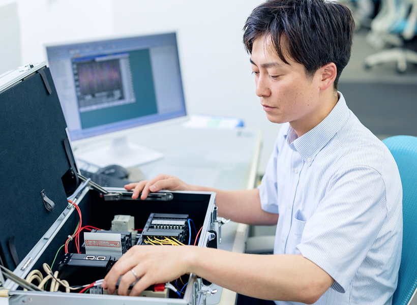 加熱装置の電気やソフトウェアに関わる設計の担当として、制御盤や電気工事の仕様をまとめ、協力会社やお客さまとのすり合わせなどを行っています。また、現地での据付作業や制作物・工事状況の検査、試運転なども担っています。