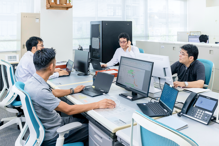また、オフィス内に打ち合わせスペースや会議室を設置し、同僚や上司と積極的にコミュニケーションをとることができる環境を整えております。2019年には、敷地内の別の建物のオフィスを改装・移転するとともに、日本ガイシが新築した食堂をNGKキルンテック社員も利用でき、綺麗で快適な職場環境が整いました。